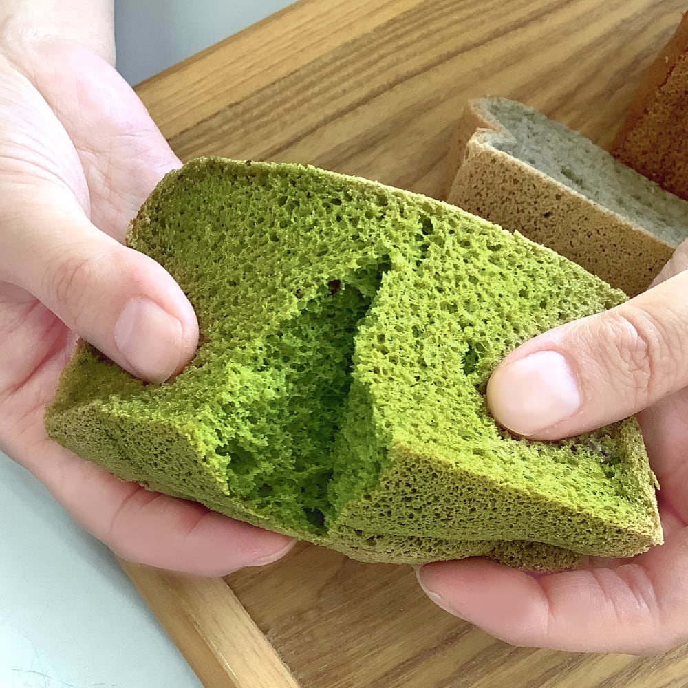 着色料など一切不使用で、美しい翠色のシフォンケーキに仕上げております。