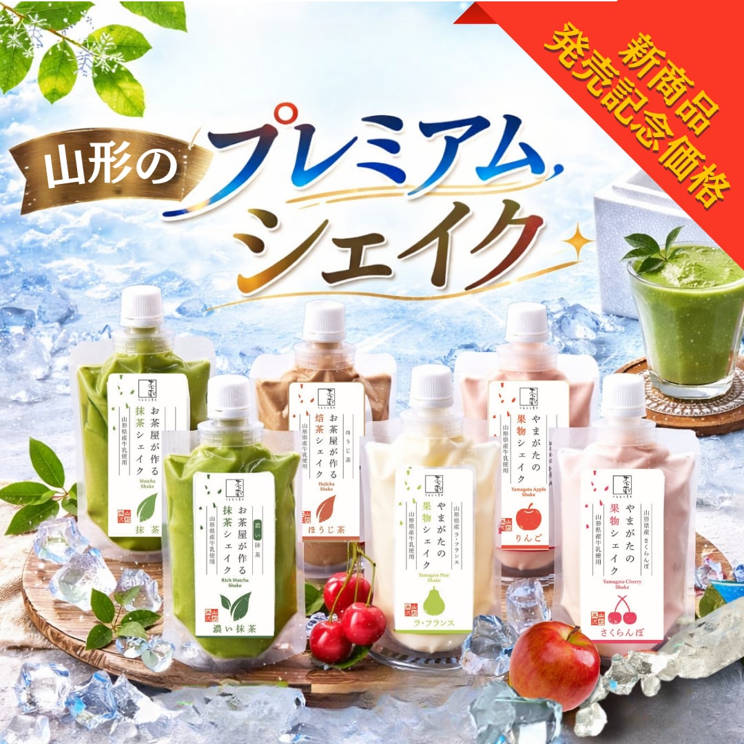 老舗お茶屋が手掛ける本格抹茶シェイクと、山形の恵みを生かしたフルーツシェイクを